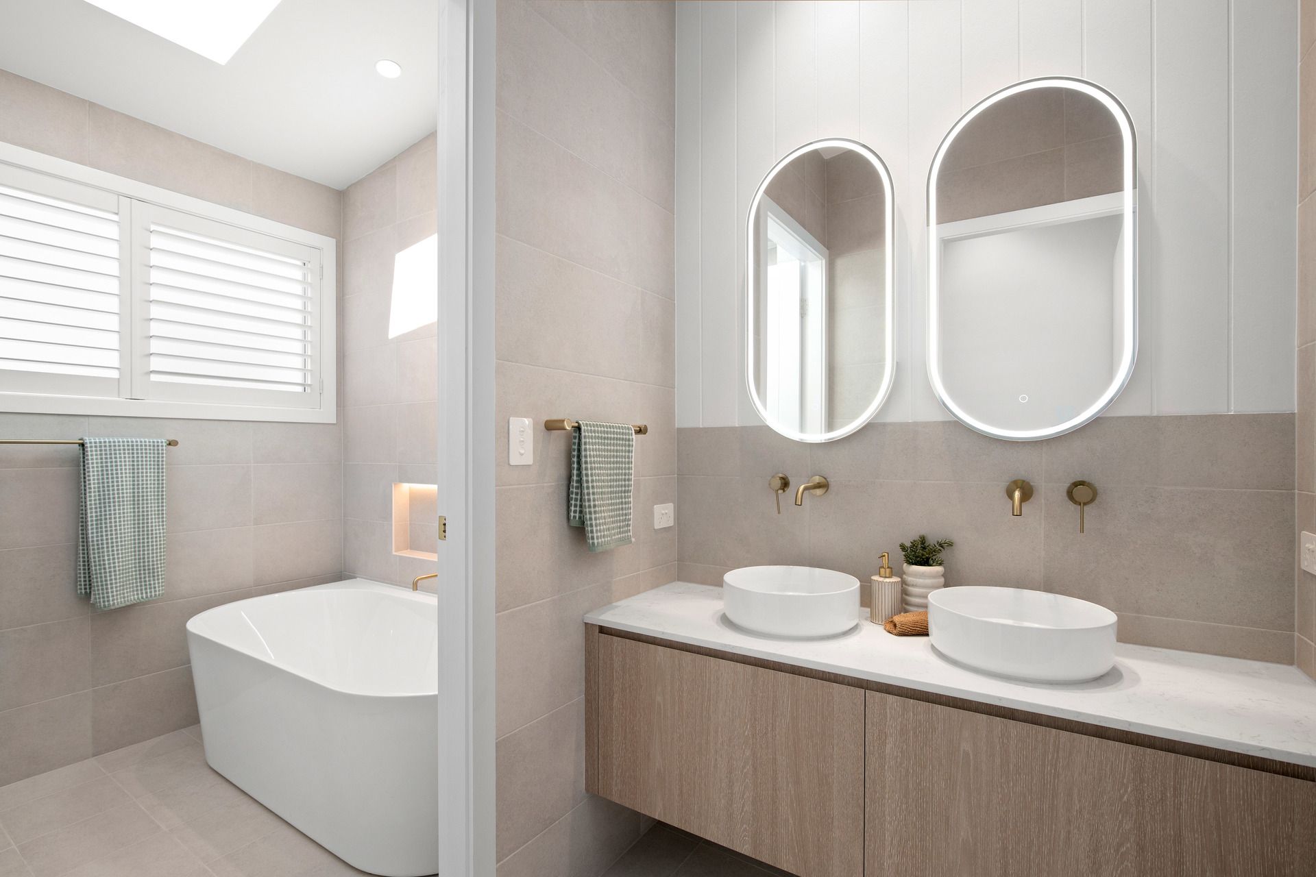 • Luxurious bathrooms with heated floor tiles and custom vanity