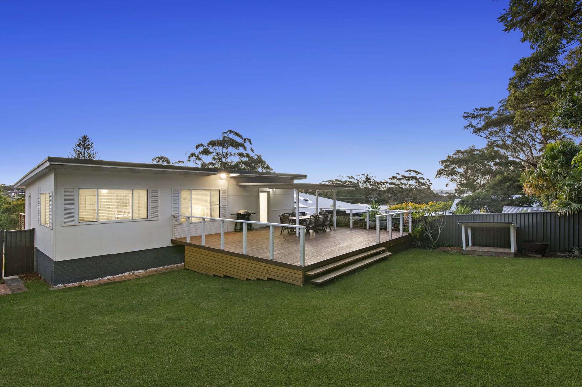 The expansive entertainment deck is a standout feature of this property, covered for all-weather enjoyment, making it perfect for entertaining guests year-round. The deck leads to a fully fenced near-level backyard with side access, ensuring the safety of your children and pets. As you relax on the deck, you'll be greeted by picturesque views of Tuggerah Lake.