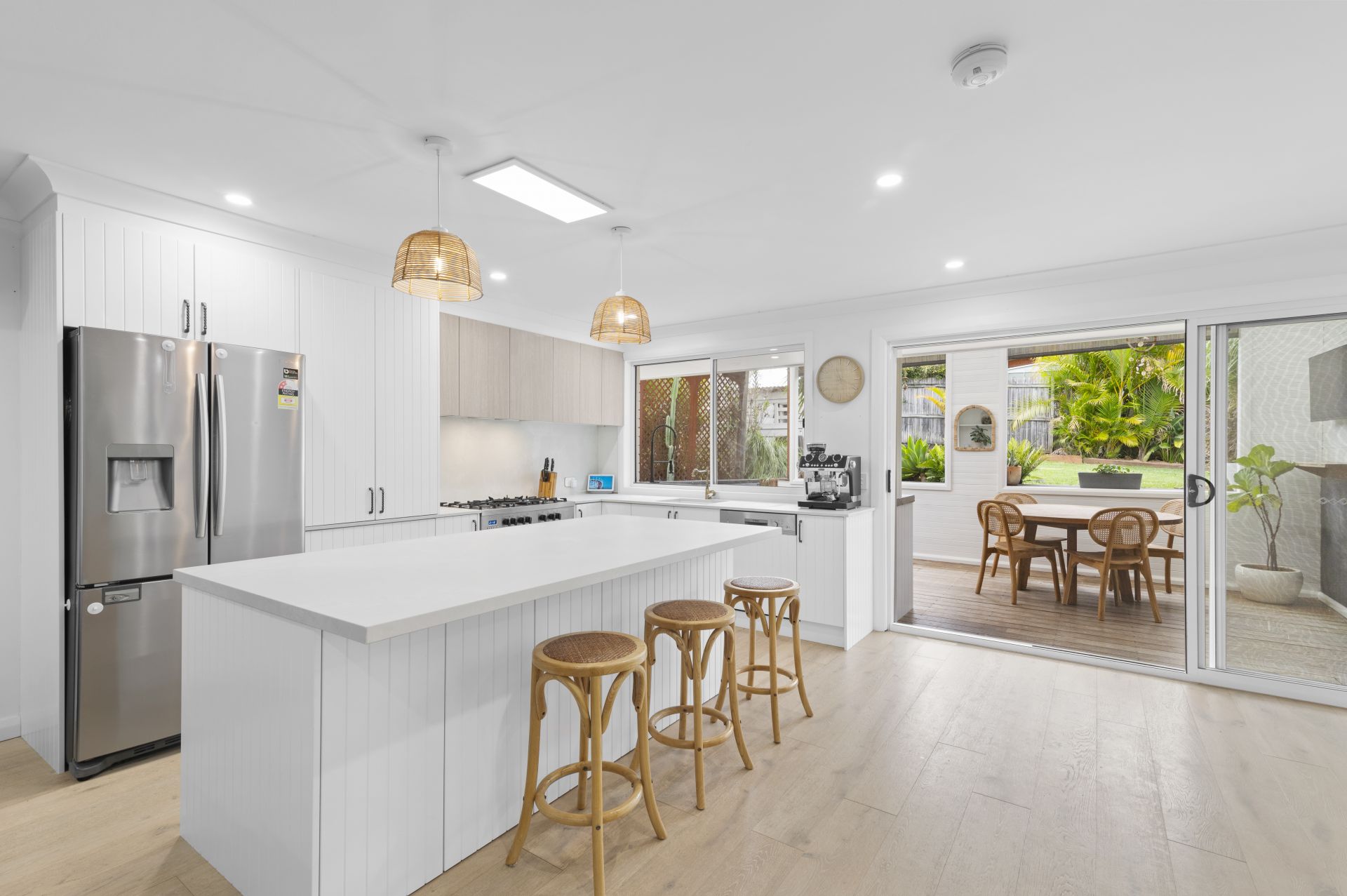 Upon entering, you'll be drawn to the open-plan layout that effortlessly connects the living, dining, and kitchen areas. The heart of the home, the kitchen, features stone benchtops, quality appliances, an island bench, plus serene views of the backyard, allowing you to keep an eye on your children while they play.