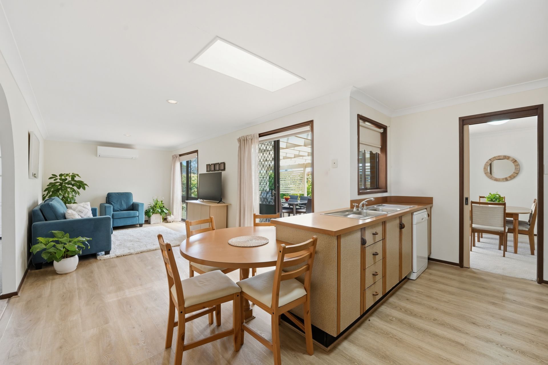 A thoughtful floorplan creates natural flow from the spacious living zone to the family room and out to the expansive covered patio - a private space designed for relaxed entertaining, morning coffees or long summer lunches surrounded by established gardens. The kitchen is neat, practical and filled with natural light, while the adjoining dining room opens through glass sliders to the alfresco area, blending indoor and outdoor living with ease.
