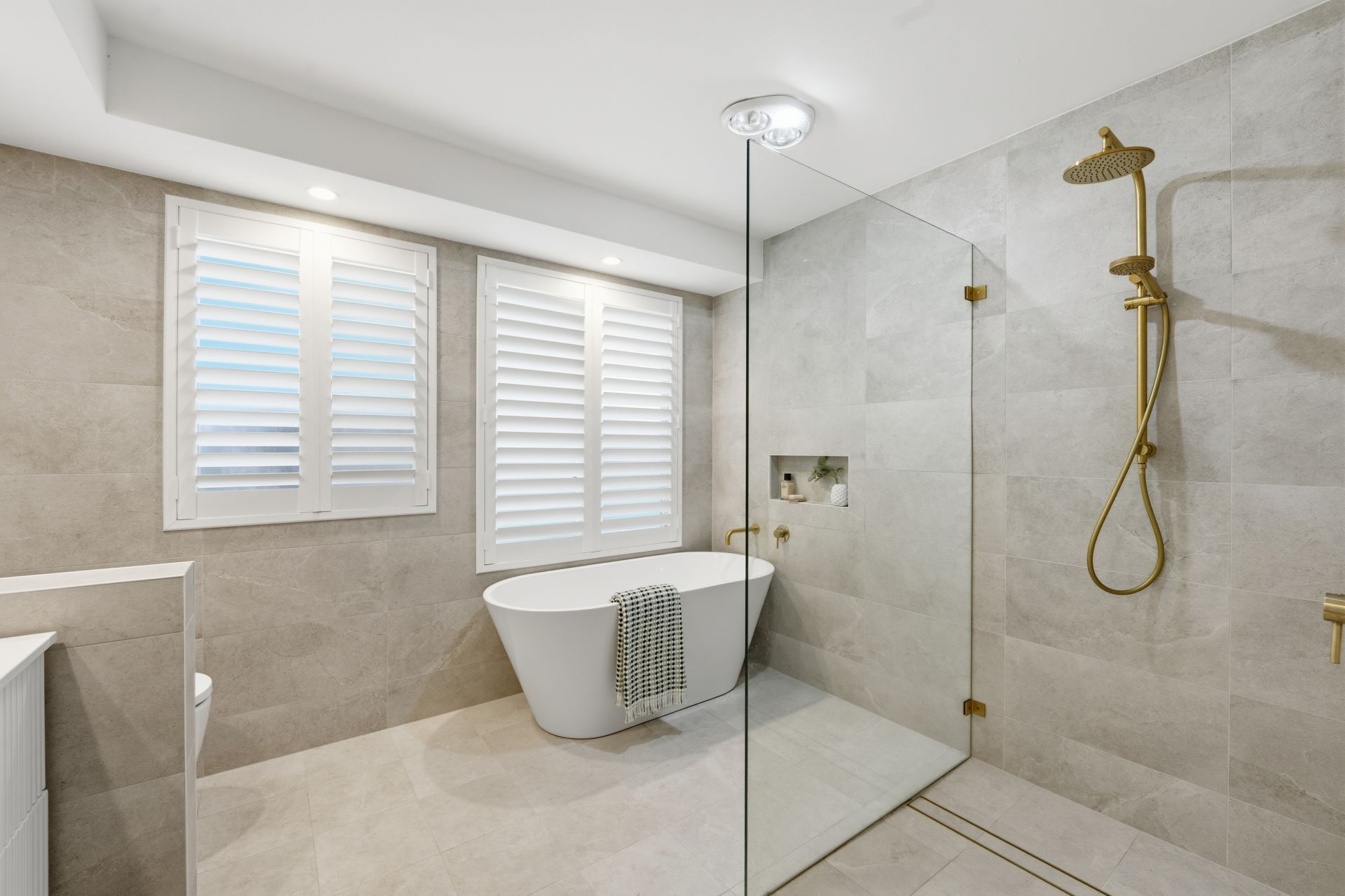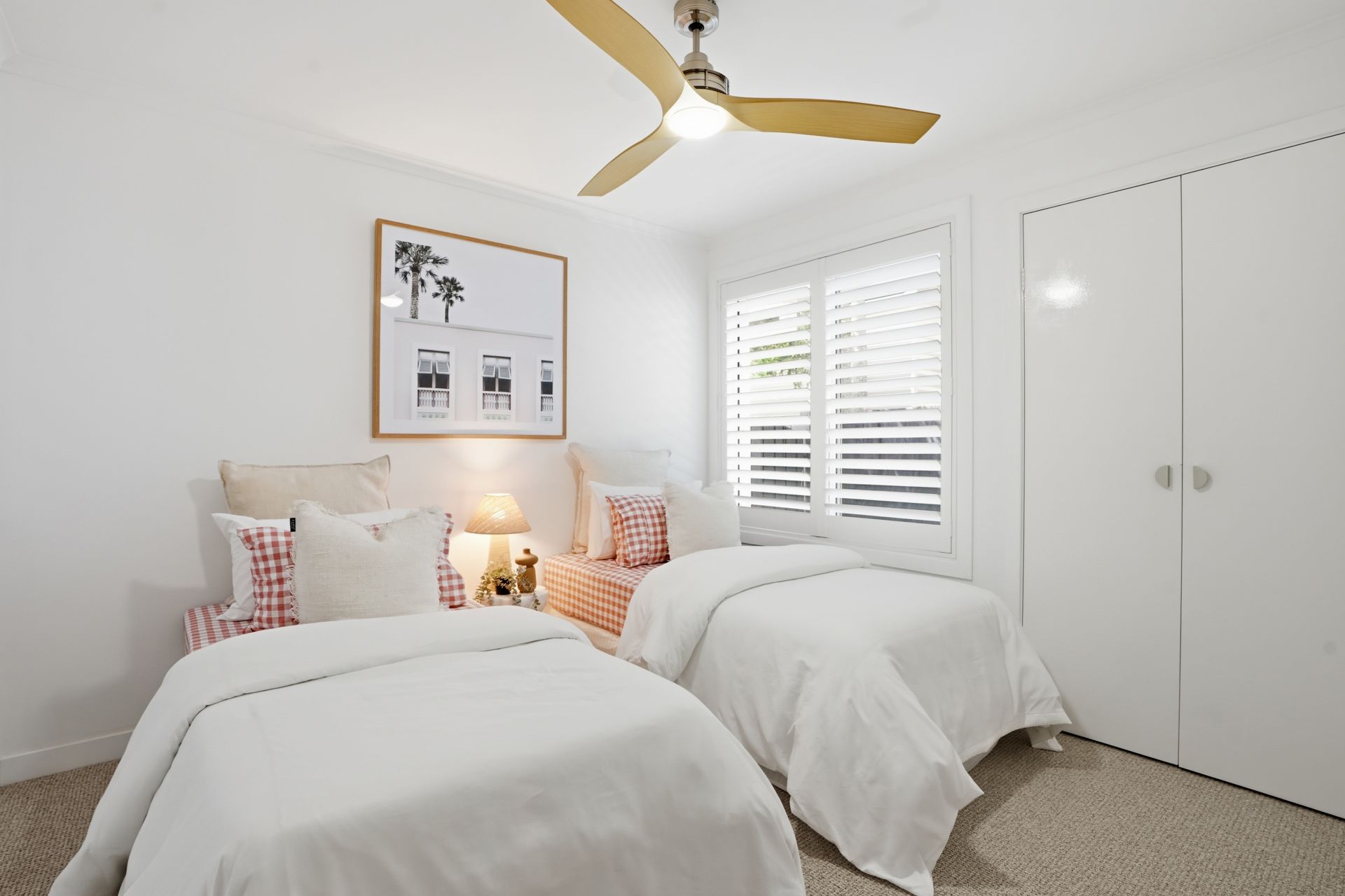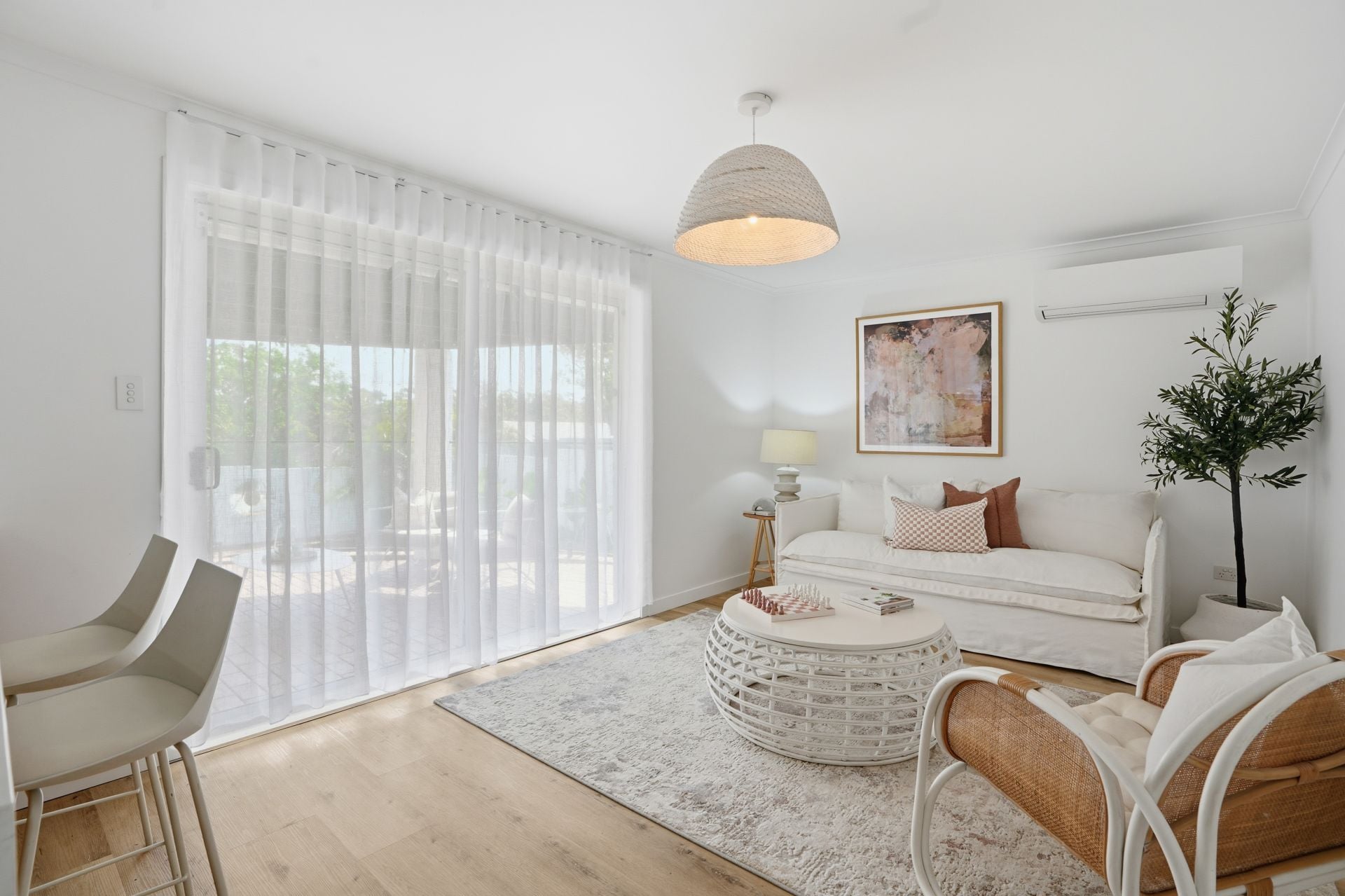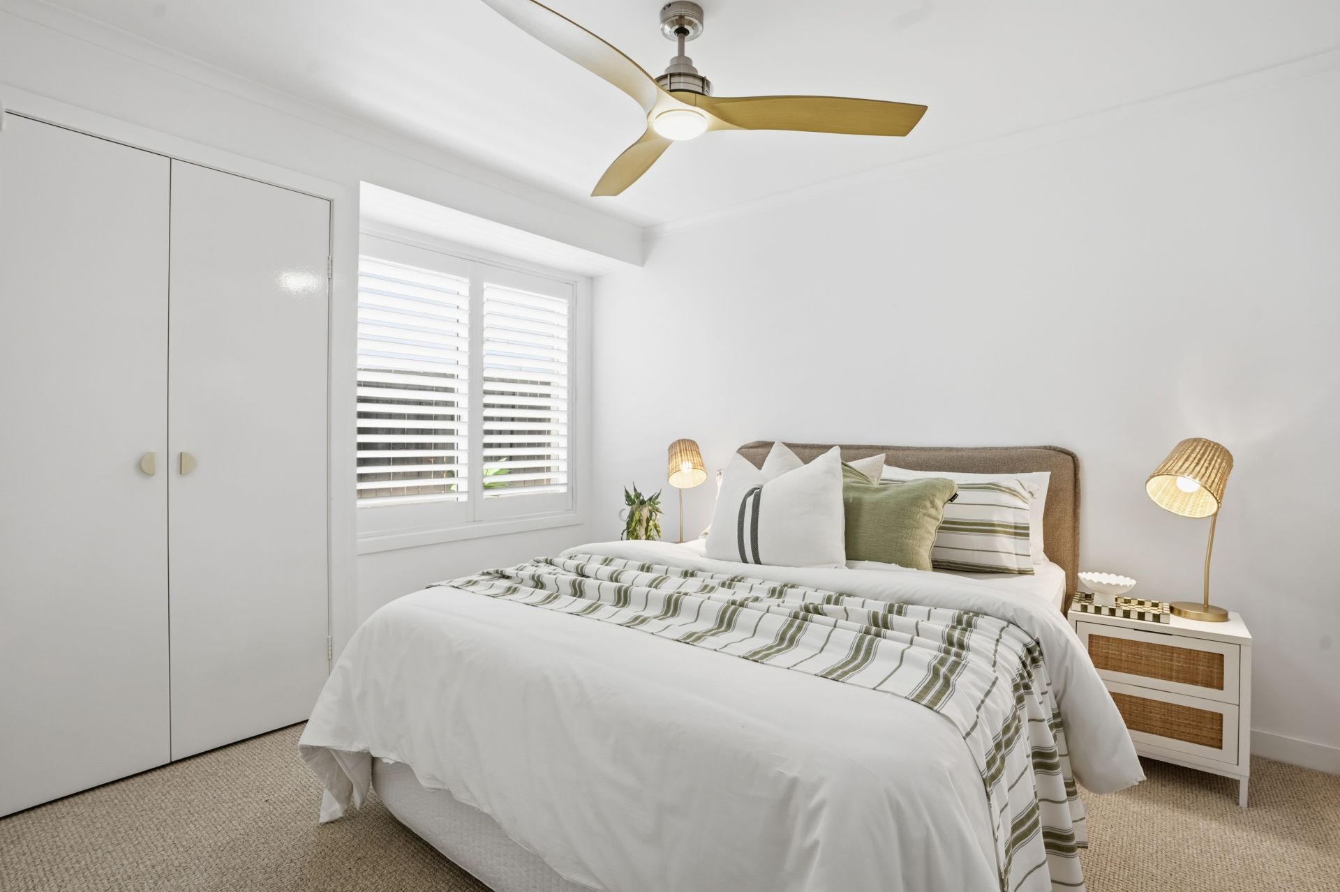 - Bright open-plan lounge and dining zones with plantation shutters