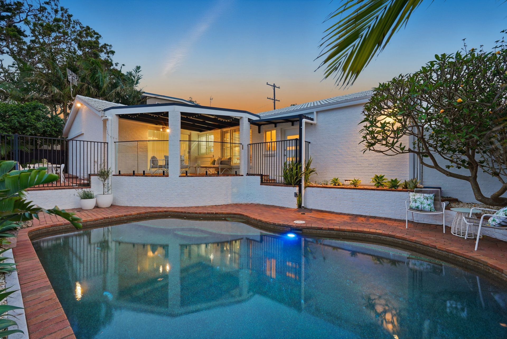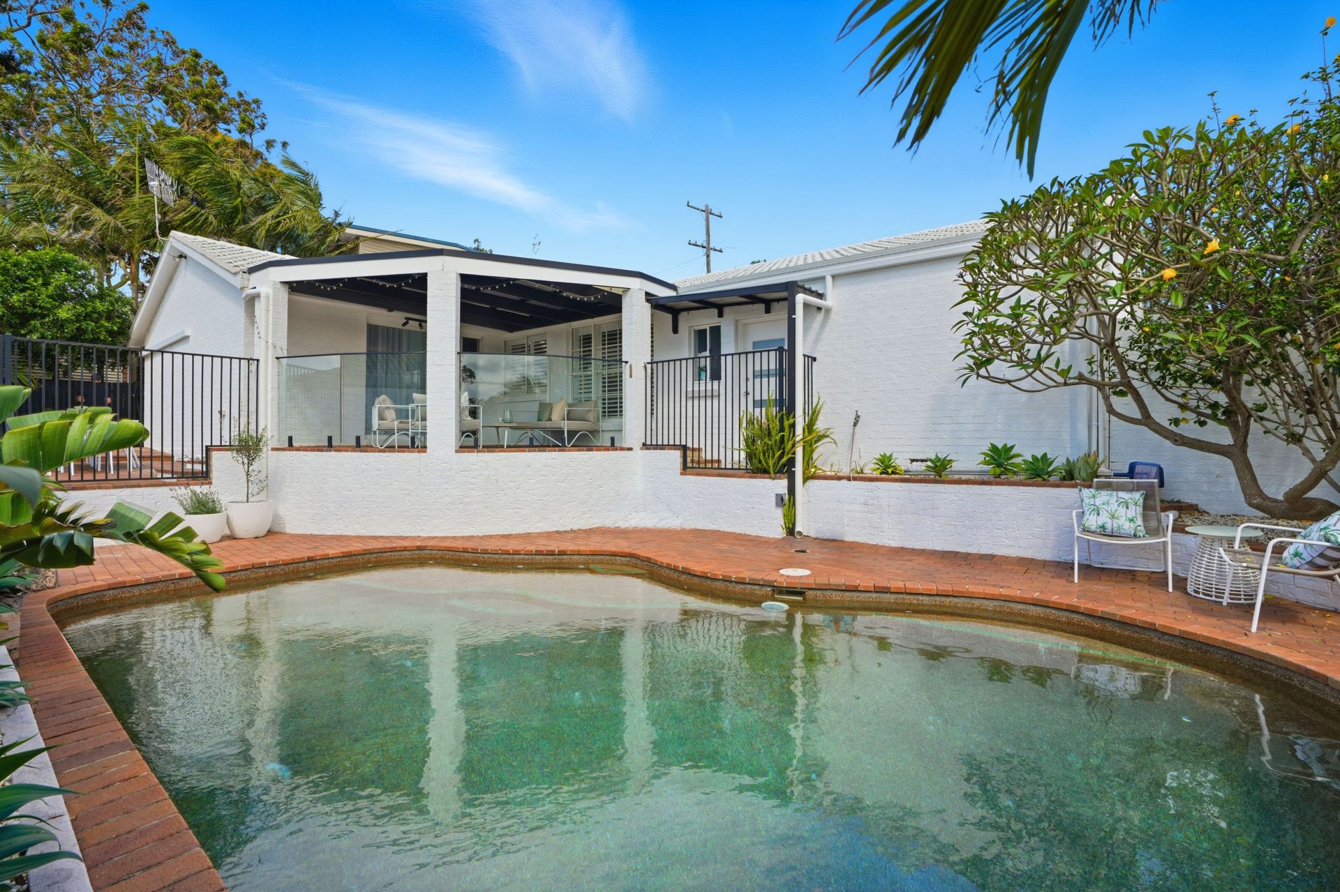 - Low-maintenance landscaped gardens with established frangipani