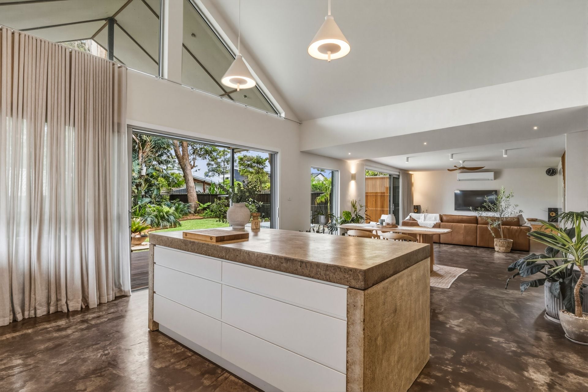 Positioned in one of the Central Coast's most tightly held coastal pockets, this architecturally designed residence offers a rare level of craftsmanship, proportion and material integrity. Recently completed and owner-built, the home reveals itself through natural textures, warm timber, concrete detailing and soaring ceilings that create an immediate sense of calm and permanence. Multiple living zones unfold across a highly functional floorplan, anchored by a striking concrete island kitchen and seamless connection to the landscaped outdoor environment.