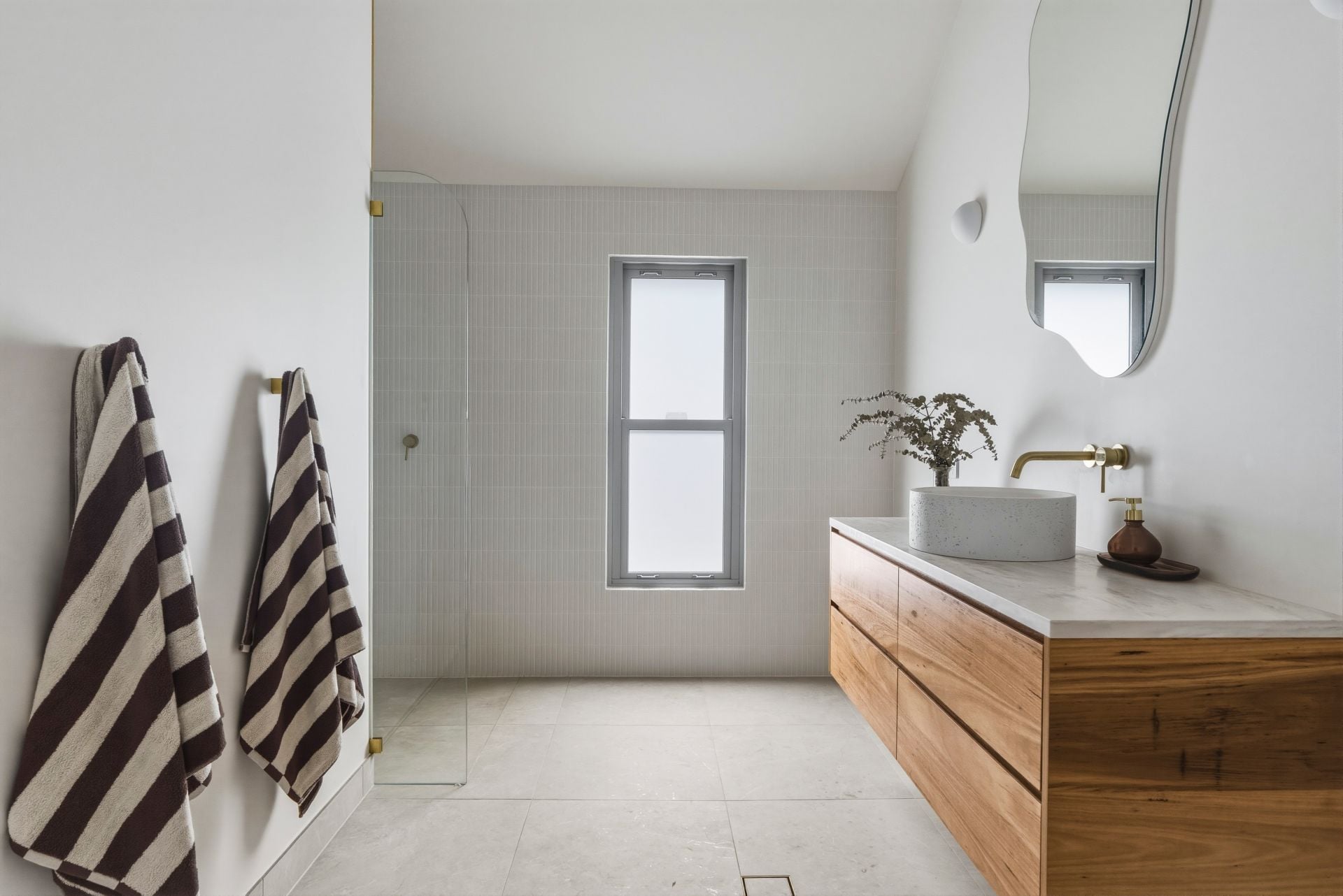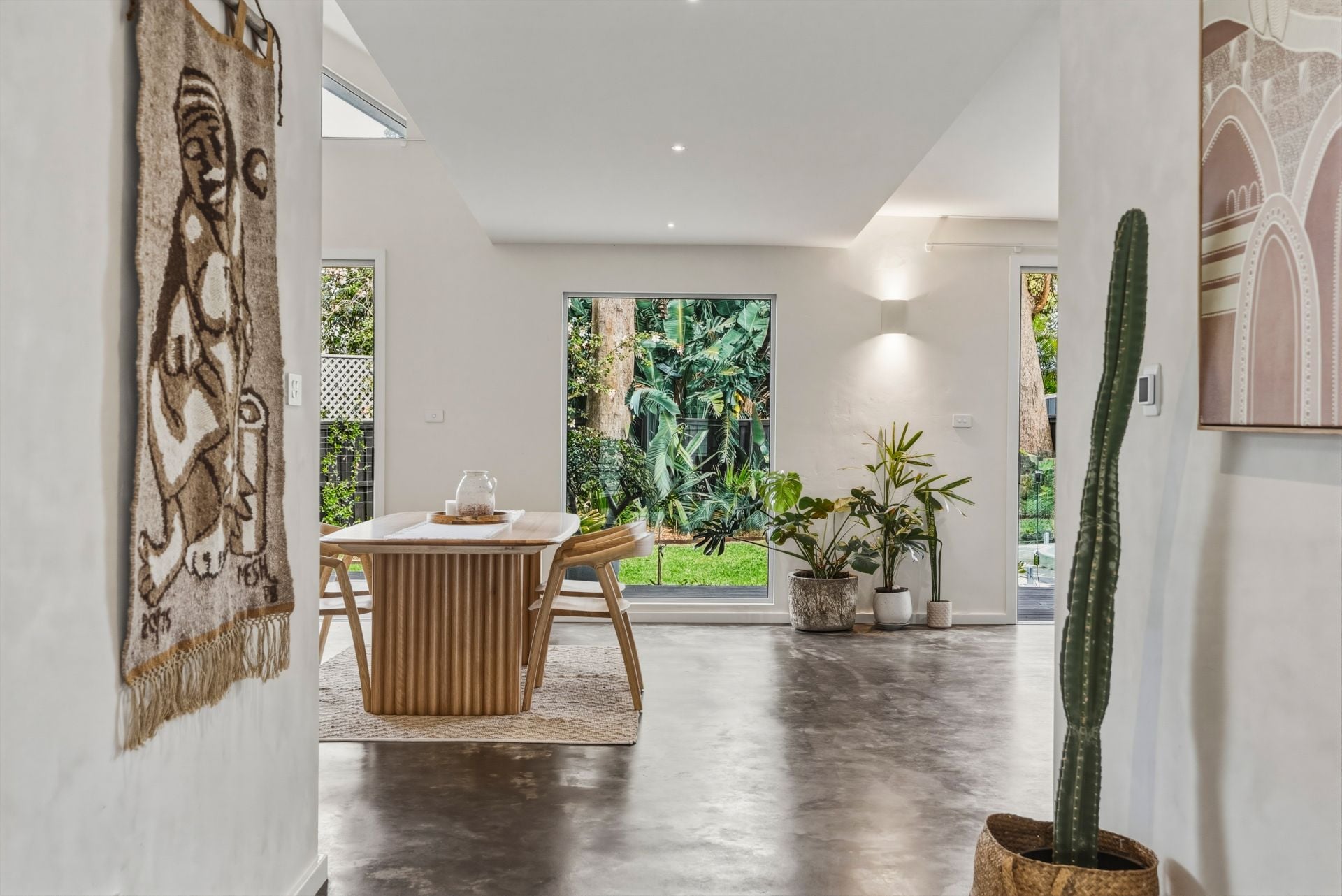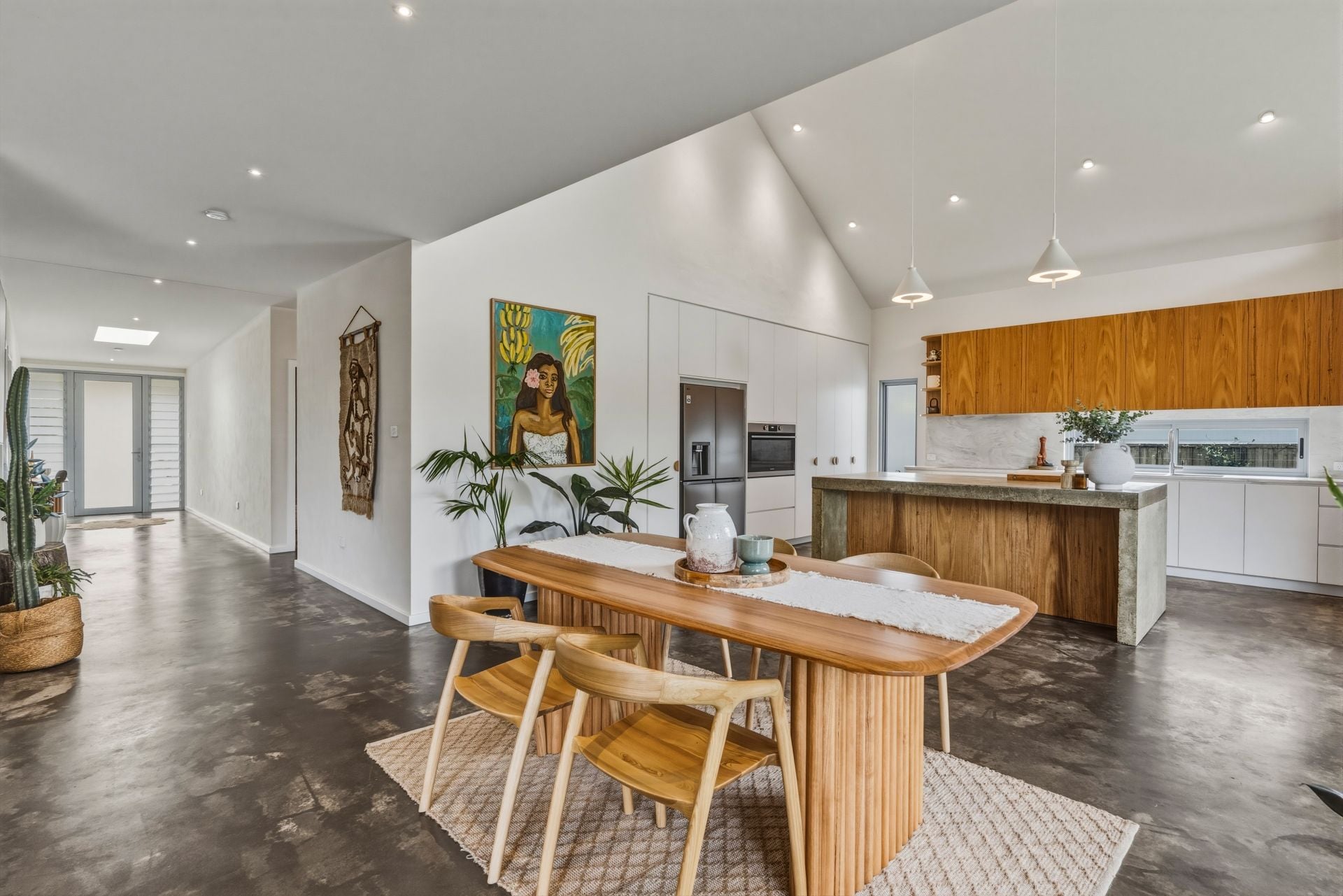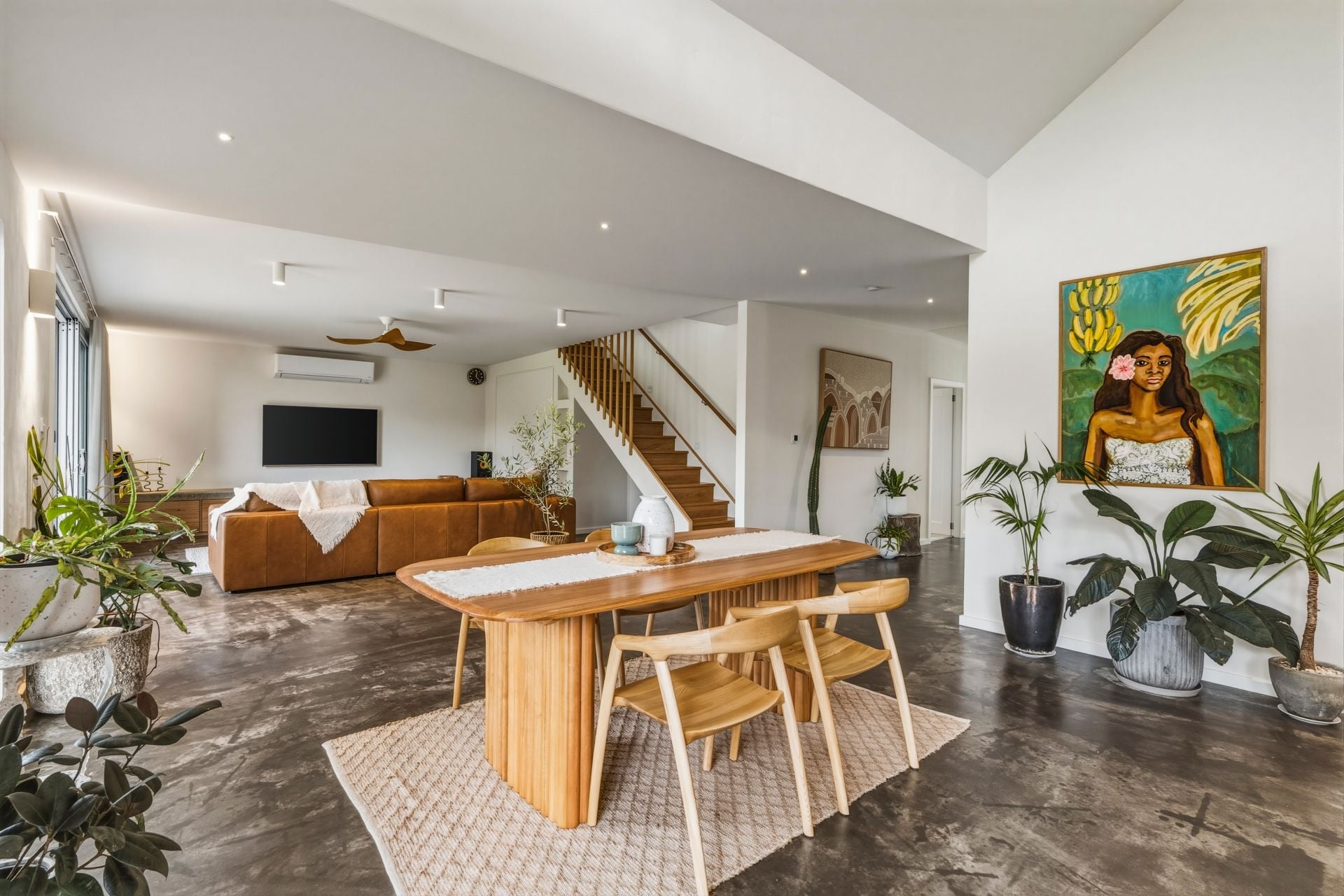 - Expansive open plan living and dining zone with soaring ceilings and seamless connection to outdoor entertaining deck