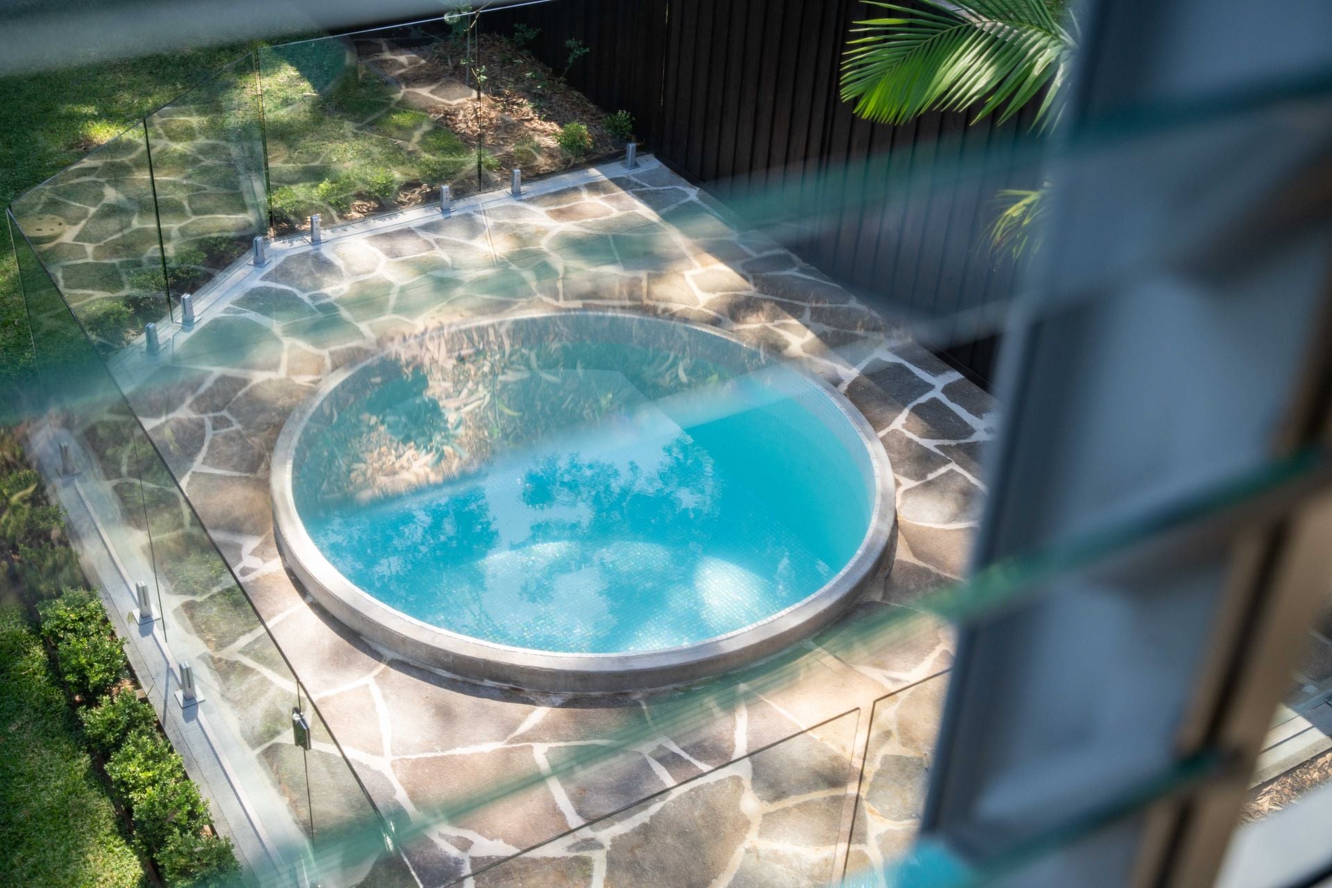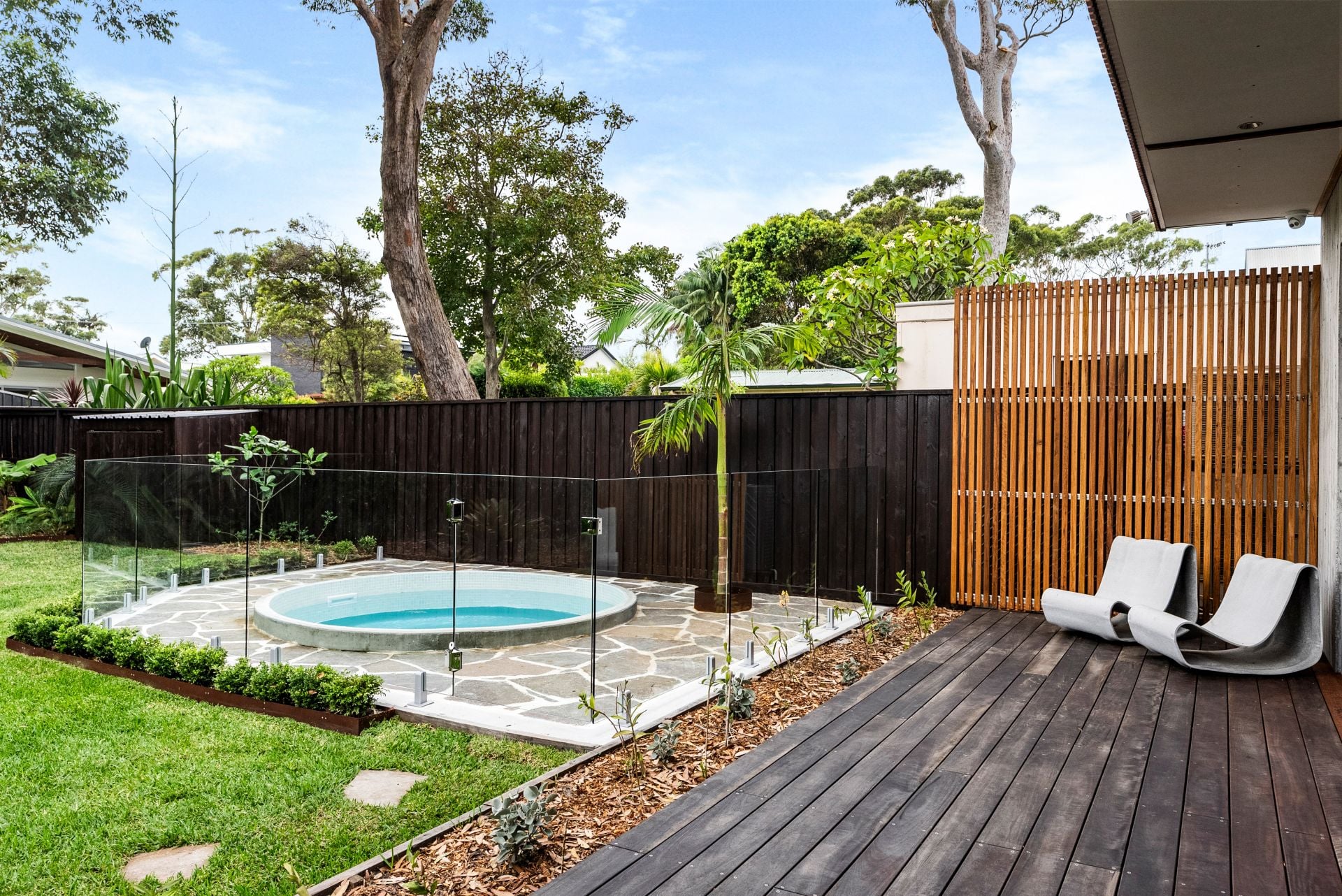 - Private landscaped backyard with circular plunge pool, level lawn and established gardens