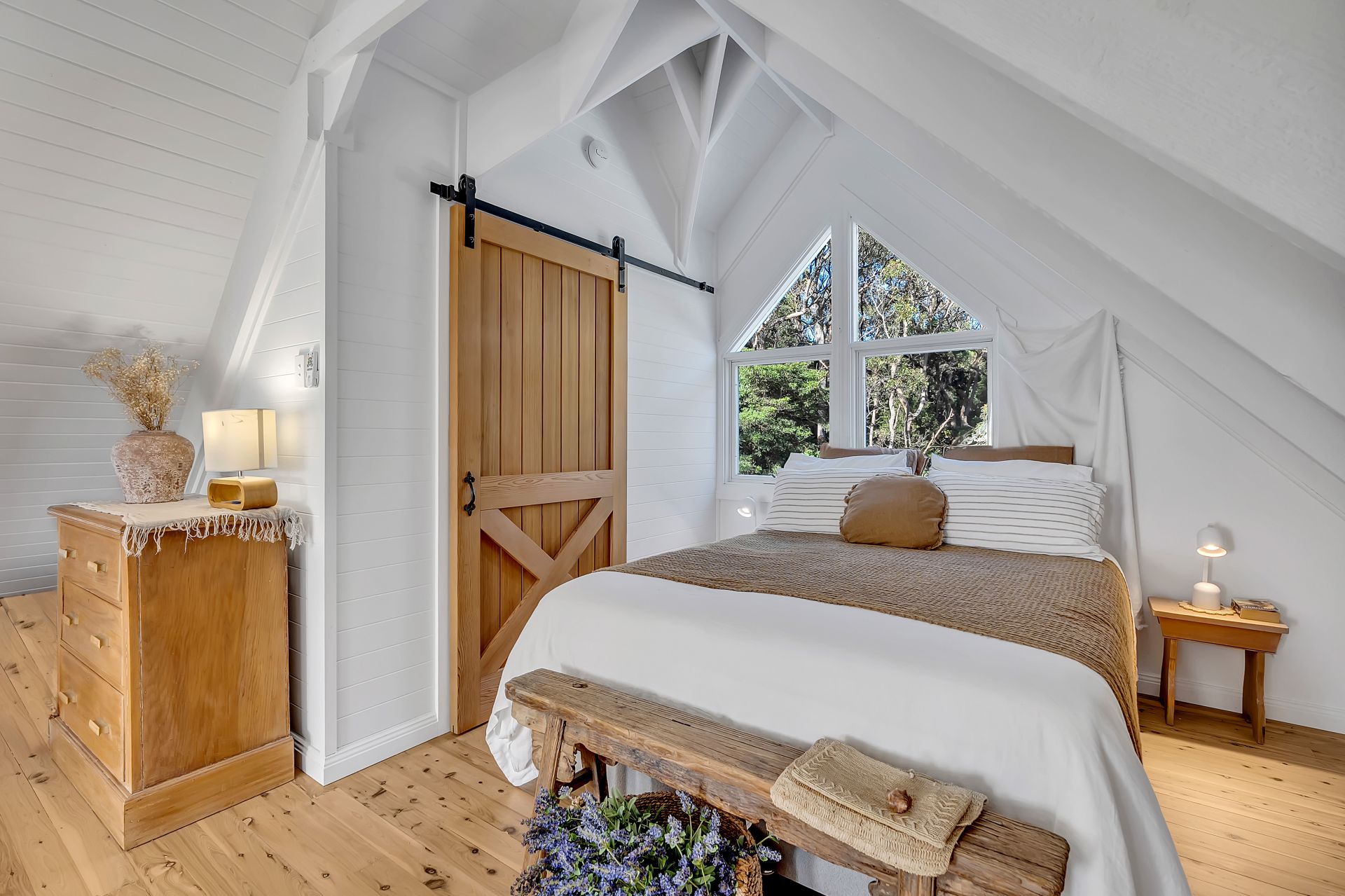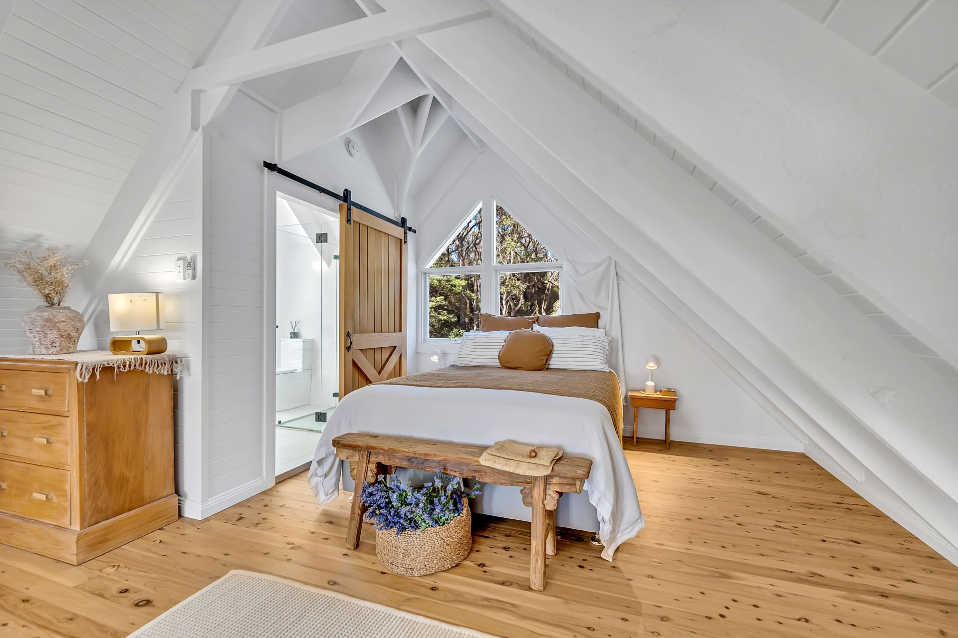 - Luxurious bathrooms including a stand alone bath and impressive tapware and Cedar barn doors