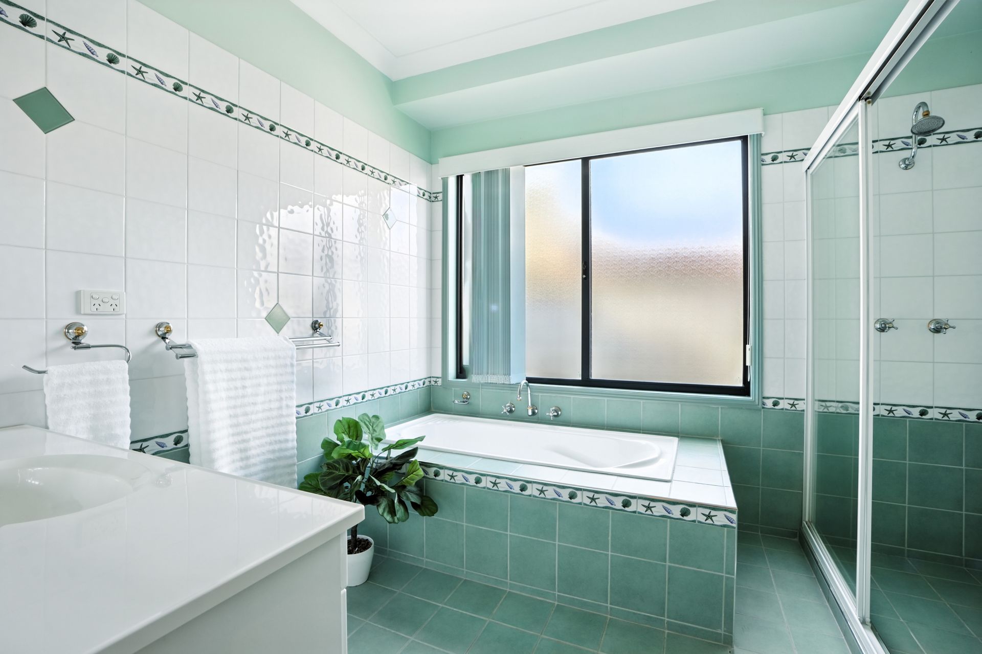 - Family bathroom with separate bath and shower