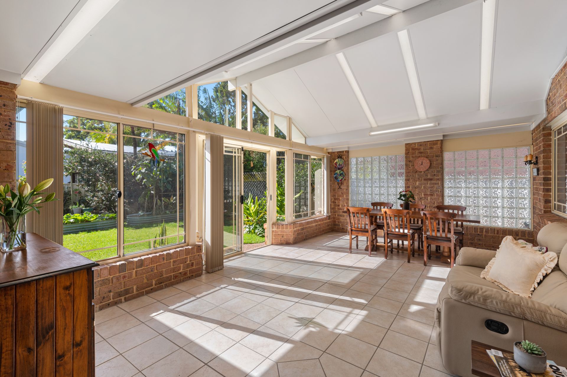 - Sensational flow to sunroom over-looking the fully fenced yard and gardens