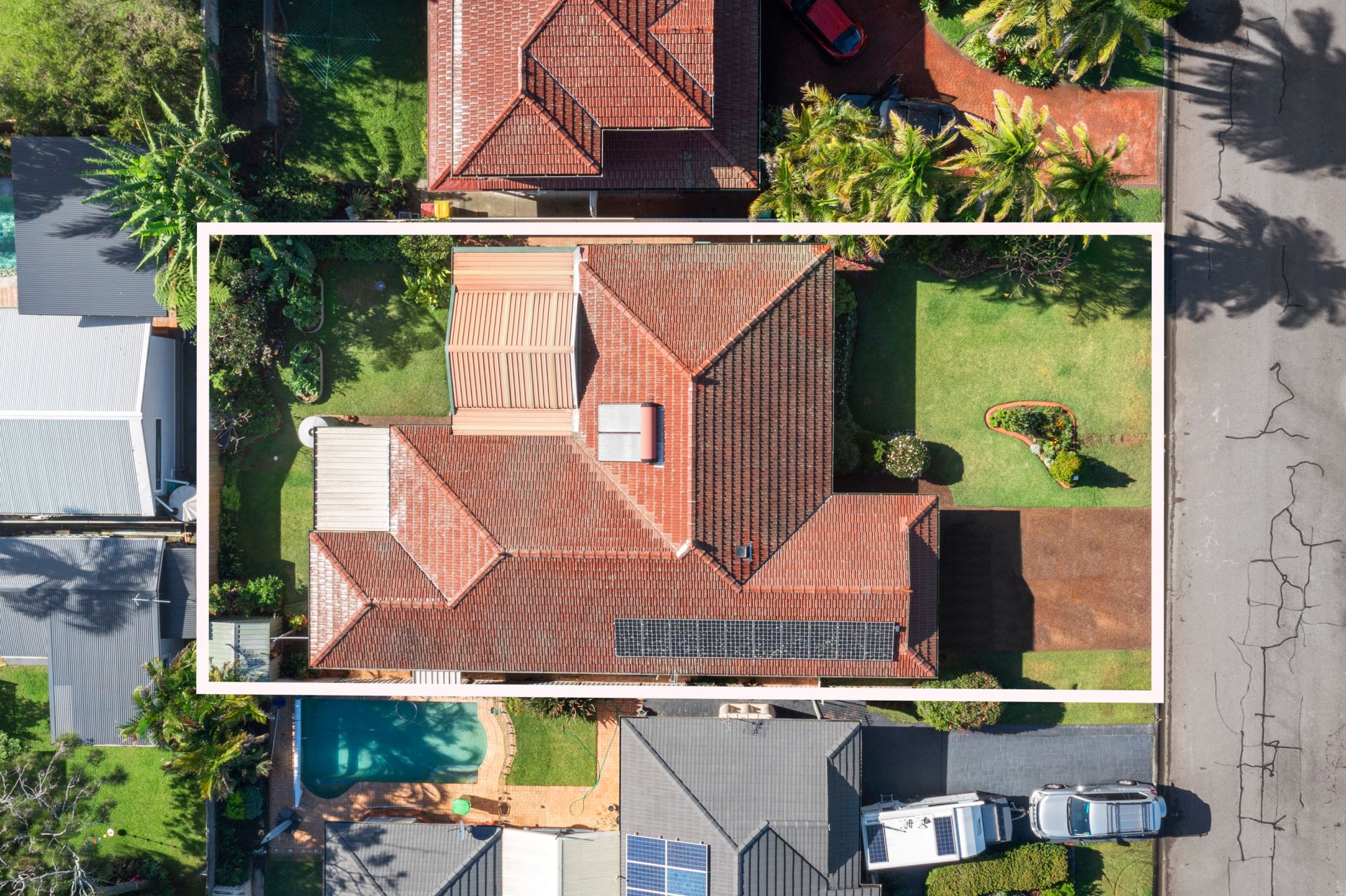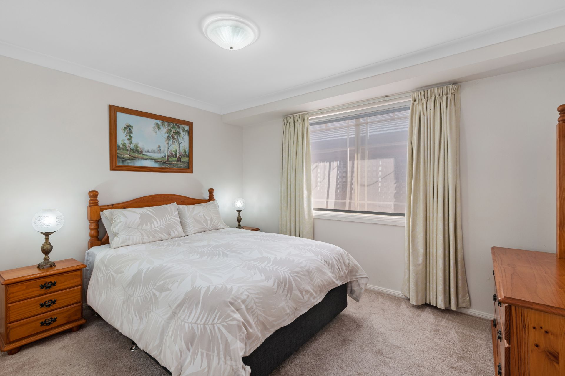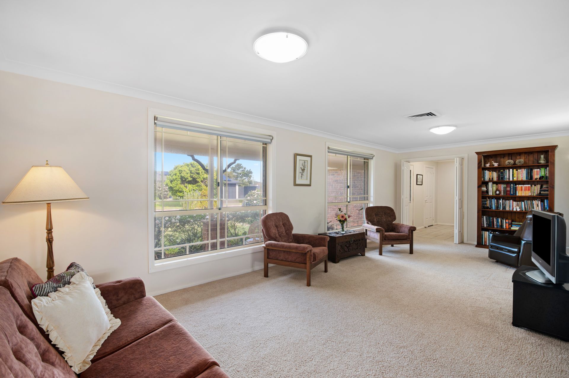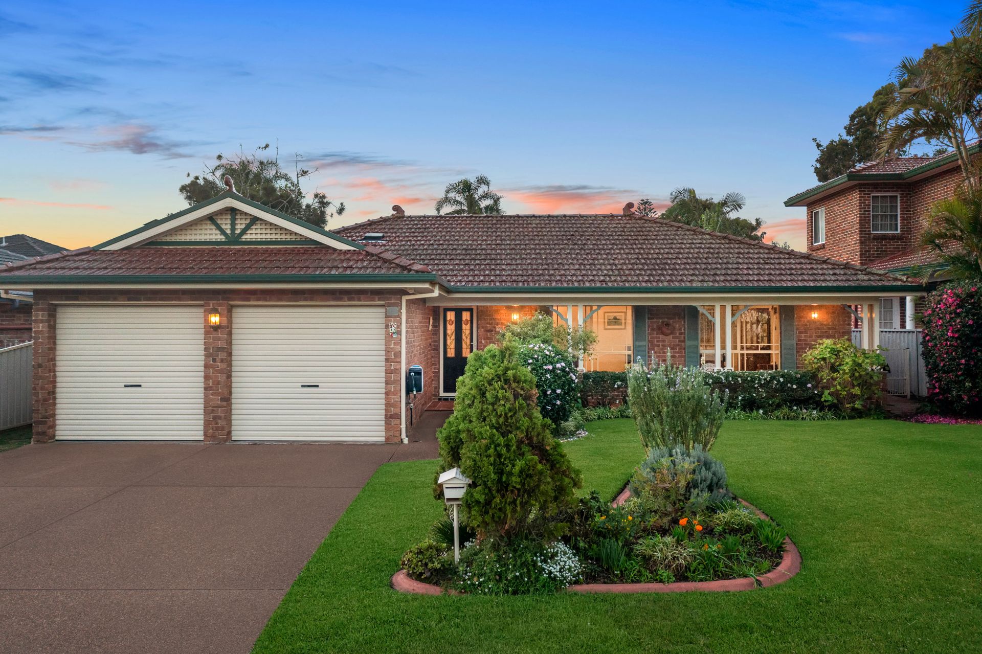 - Picturesque street appeal with manicured gardens; Easy care lawns
