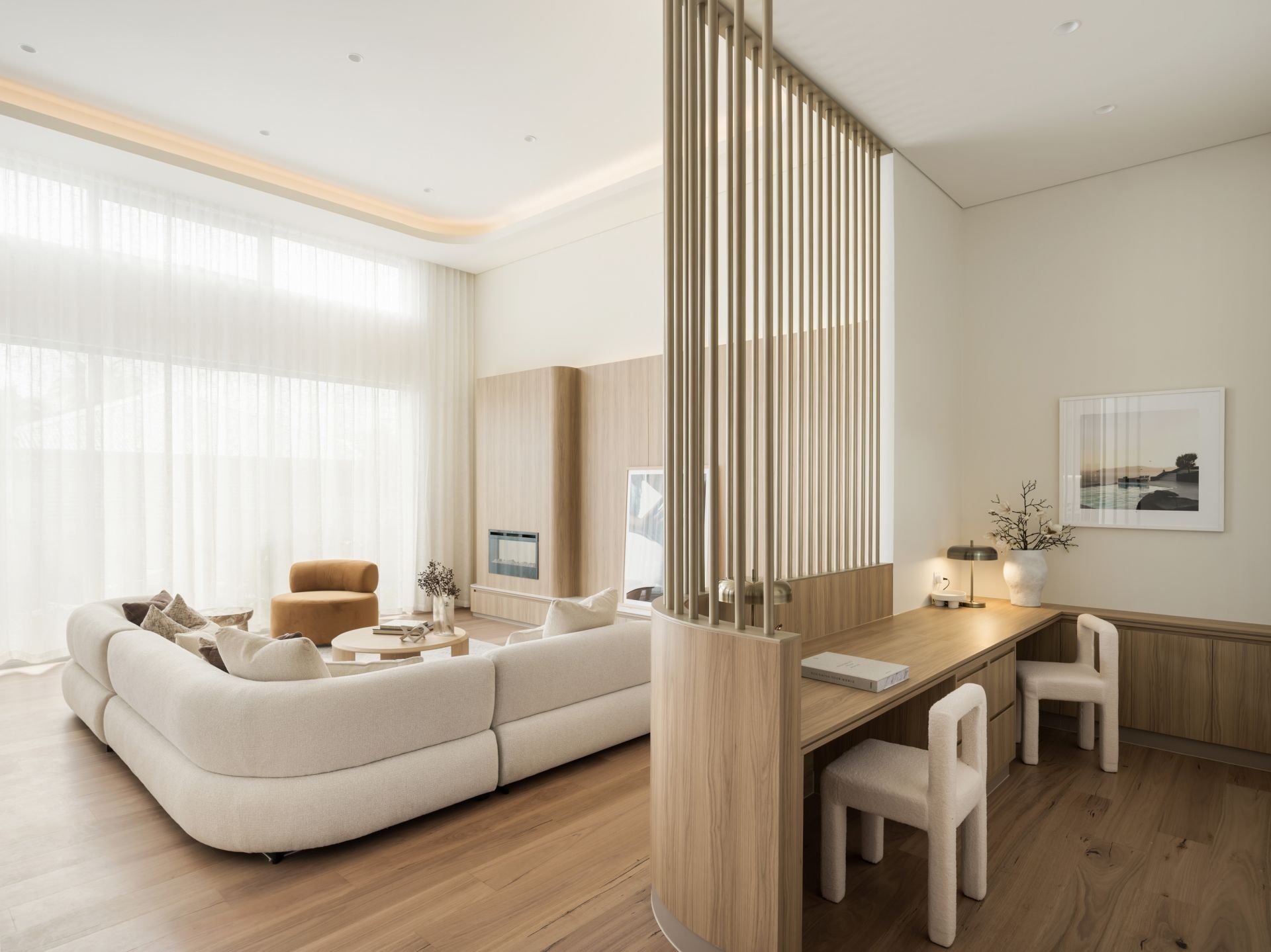 - Light-filled open-plan living with high ceilings and north-facing windows