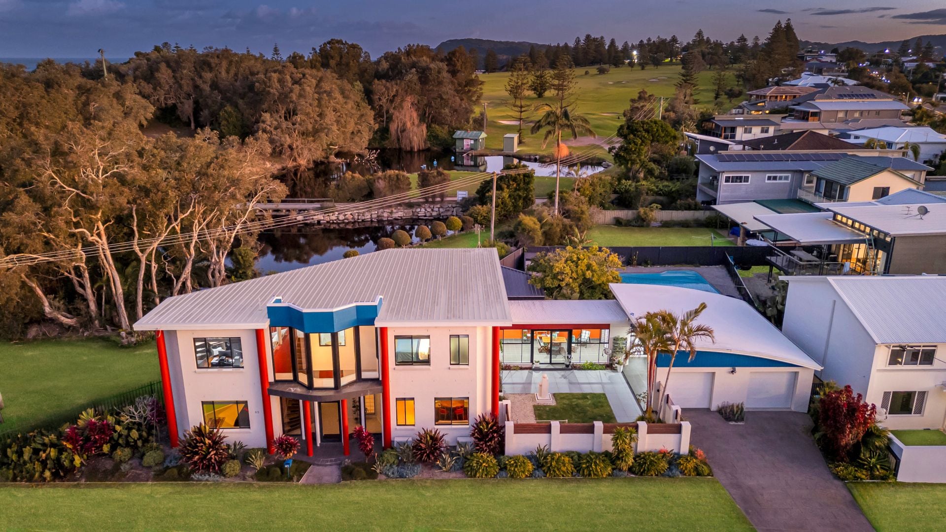 Discover the ultimate in relaxed sophistication at this dual-level, five-bedroom residence, perfectly positioned on the edge of the prestigious Shelly Beach Golf Club and just a short stroll to the golden sands of Shelly Beach. Designed for families seeking space, versatility, and a touch of luxury, this home offers a seamless blend of indoor-outdoor living and breathtaking golf course views.