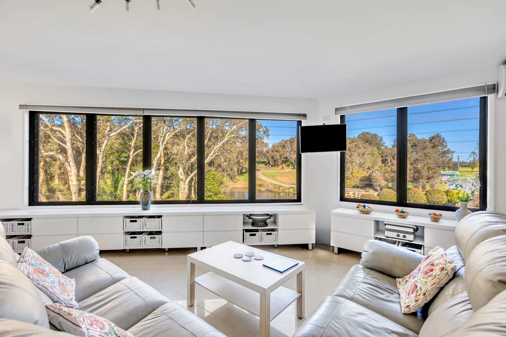 - Open-plan kitchen, dining, and lounge with oversized windows and panoramic golf course views