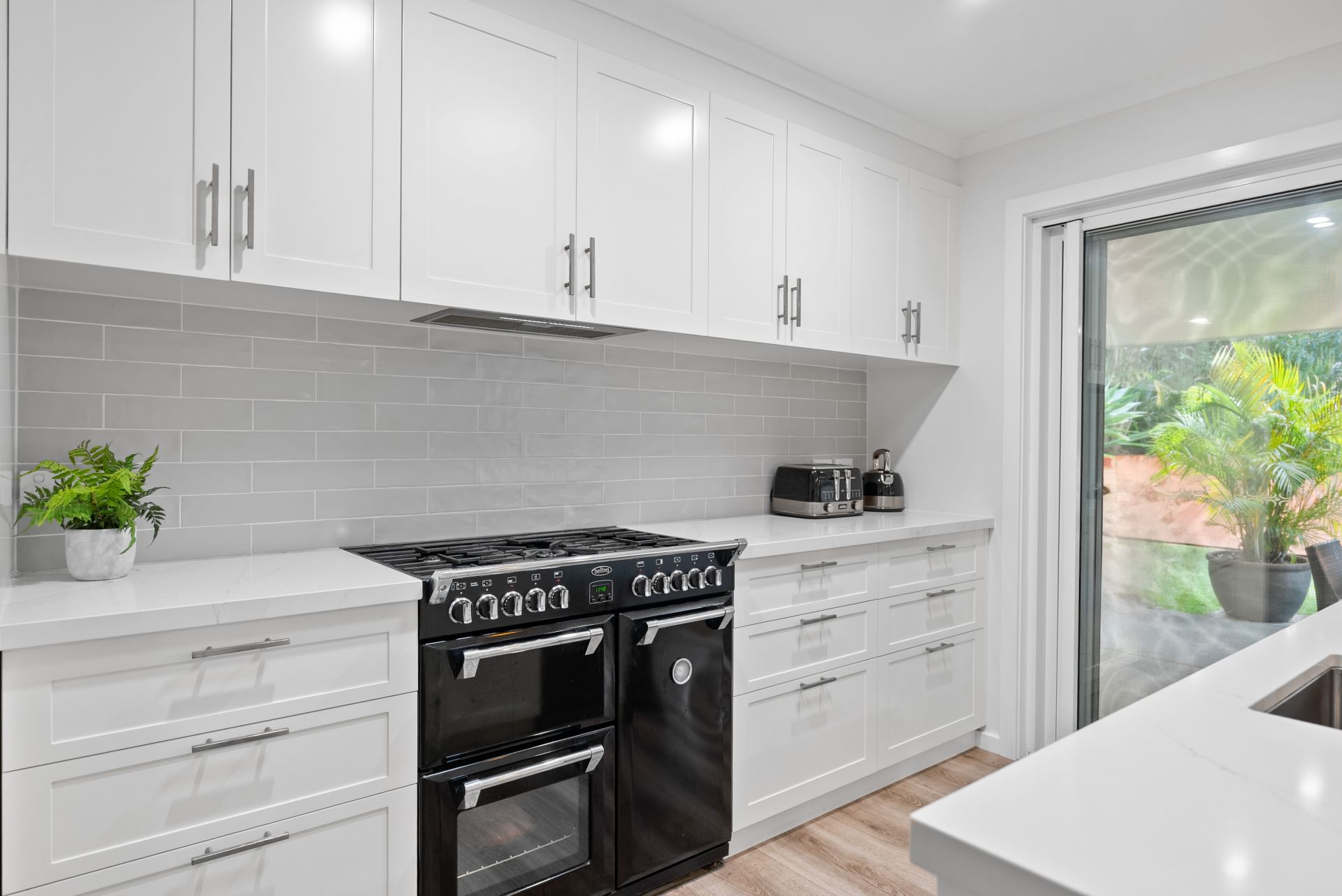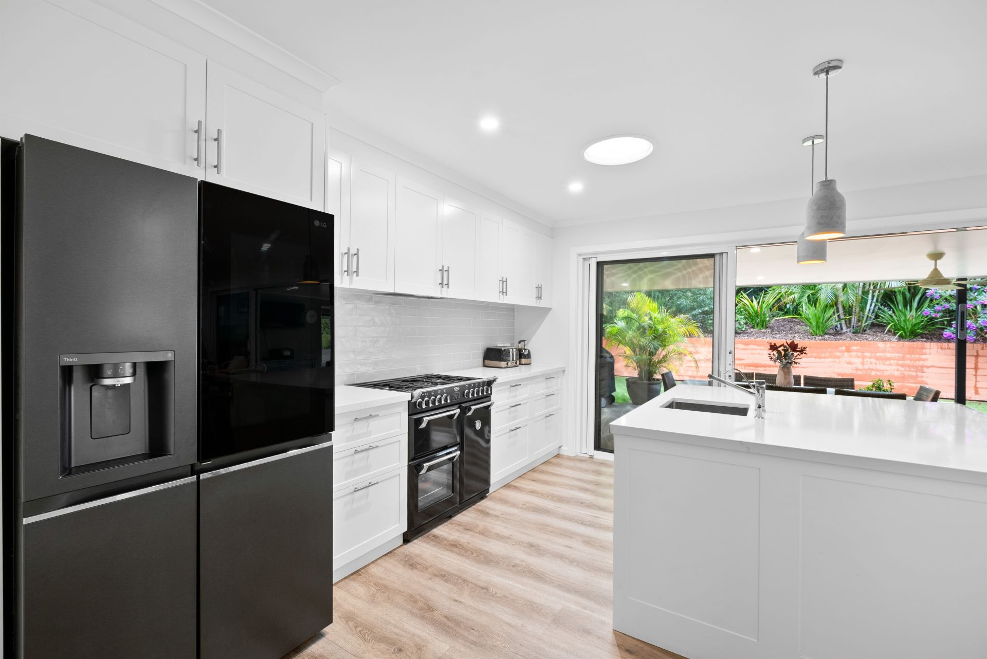 - Designer kitchen with walk-in pantry, 1100mm gas stove, and stone island bench