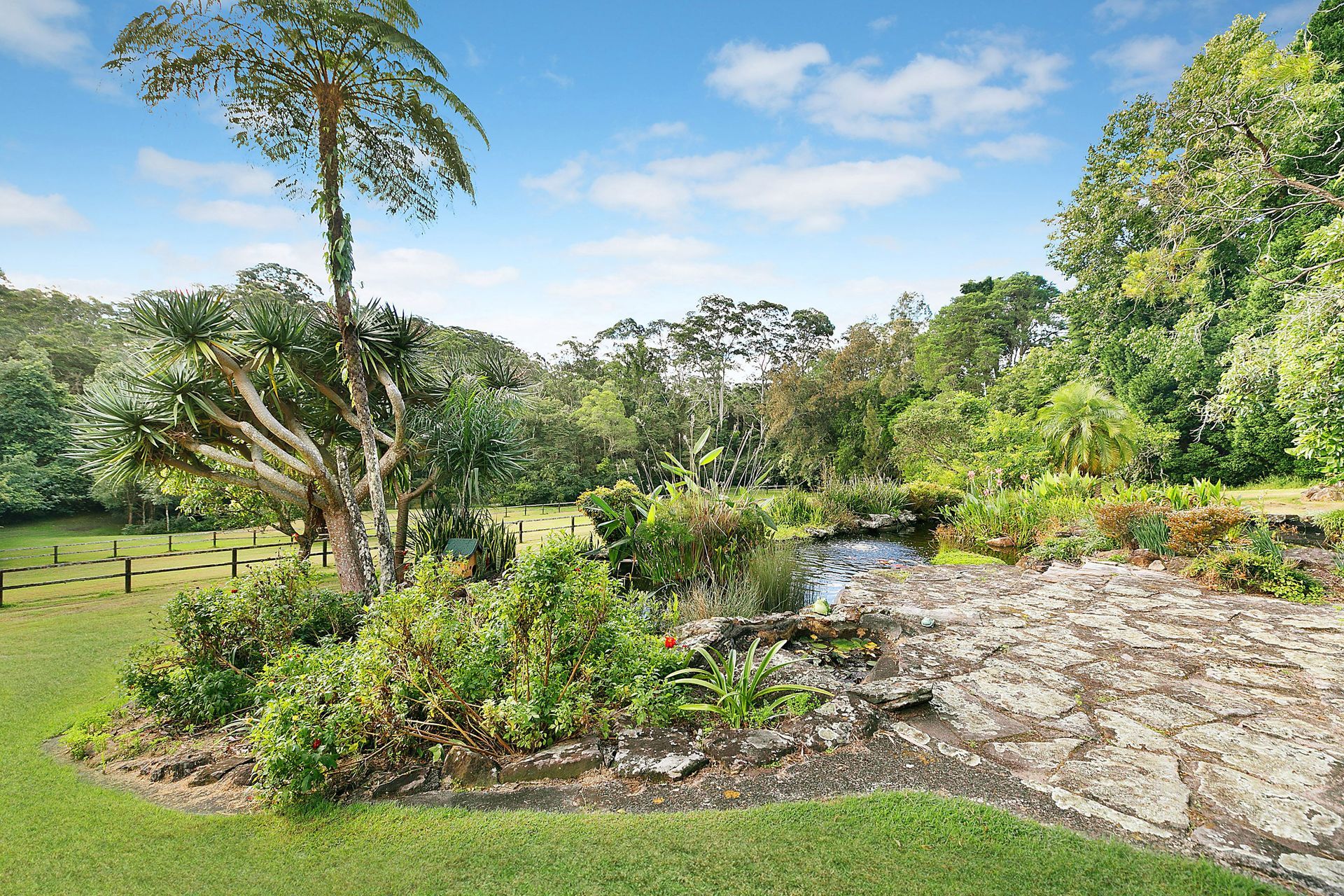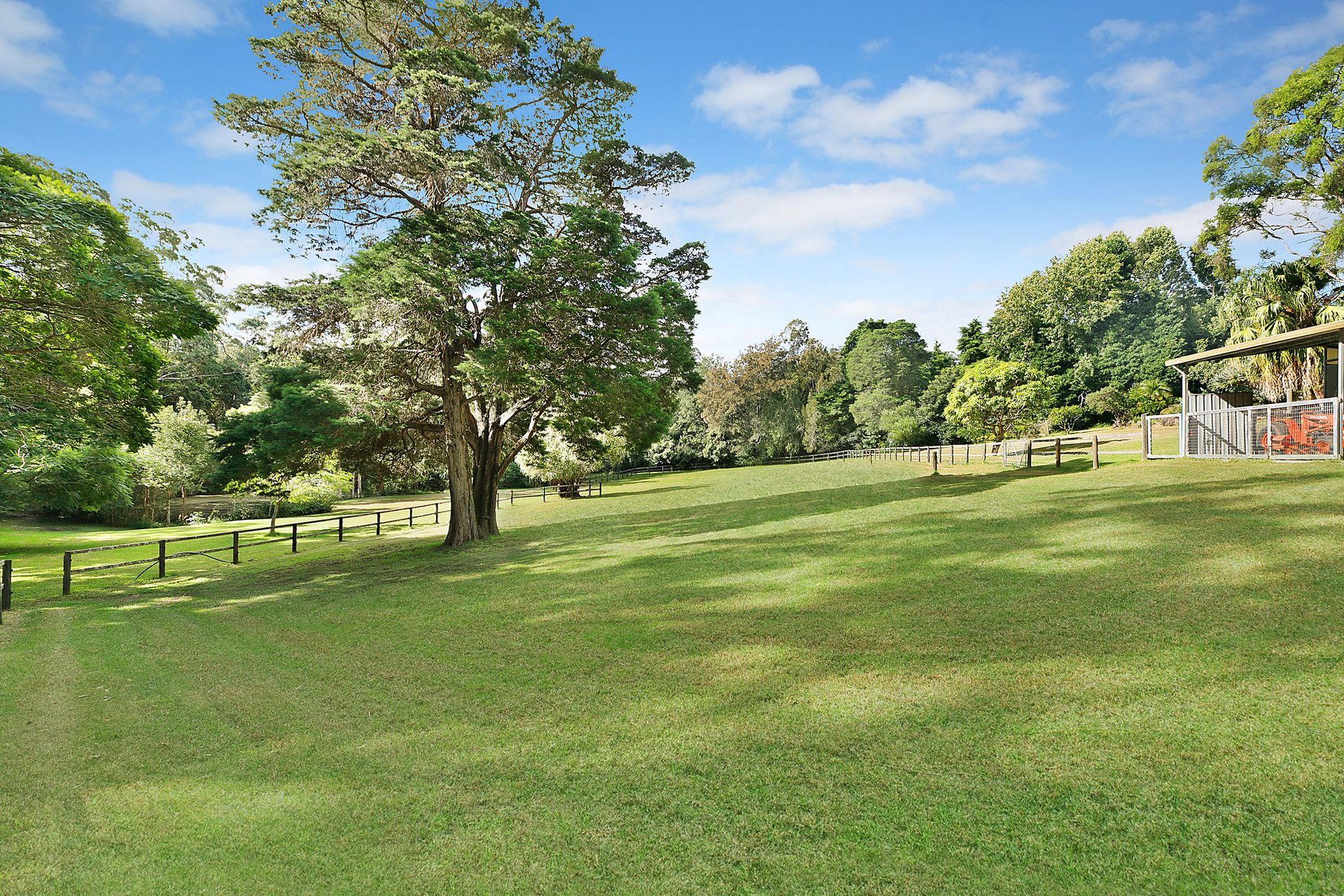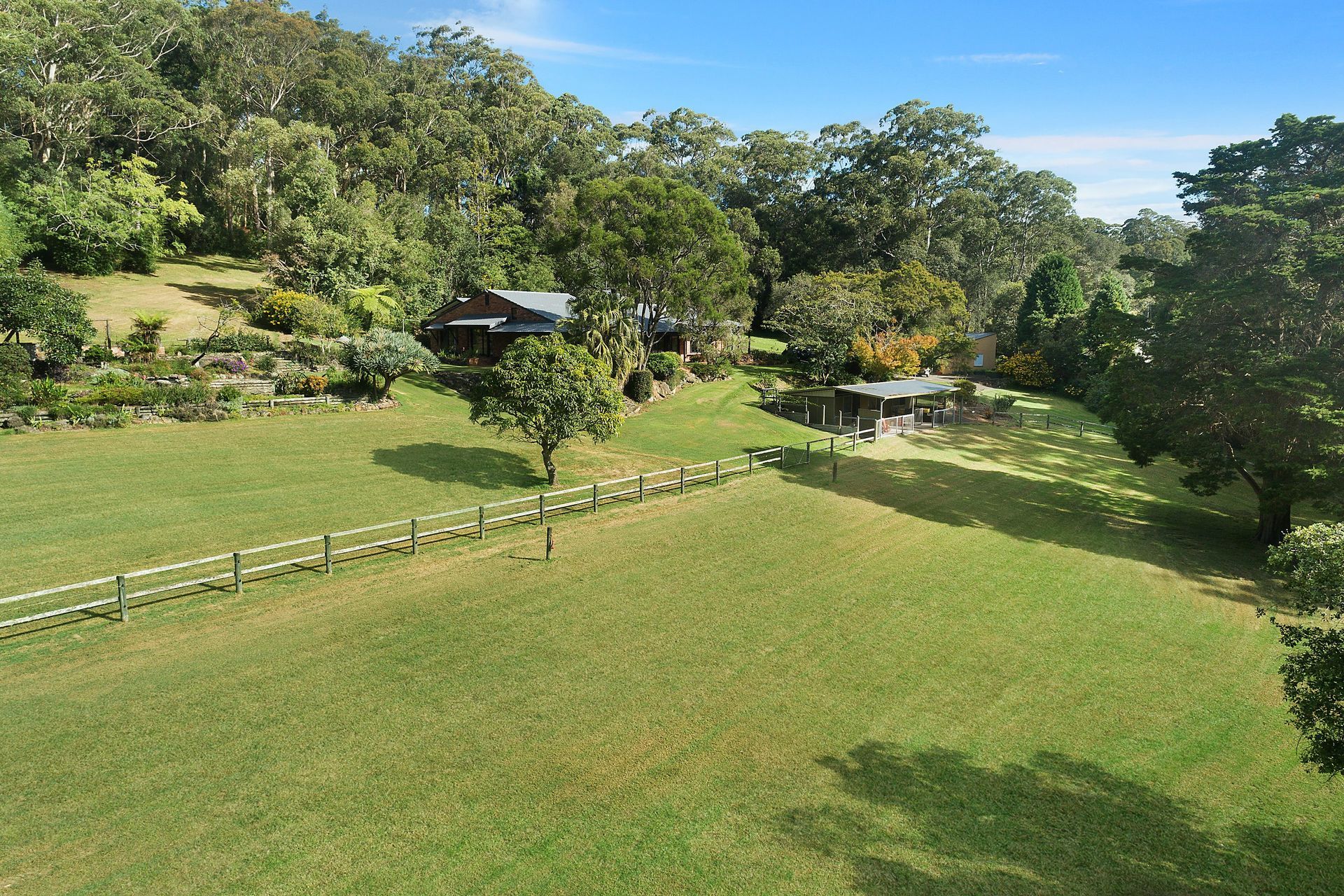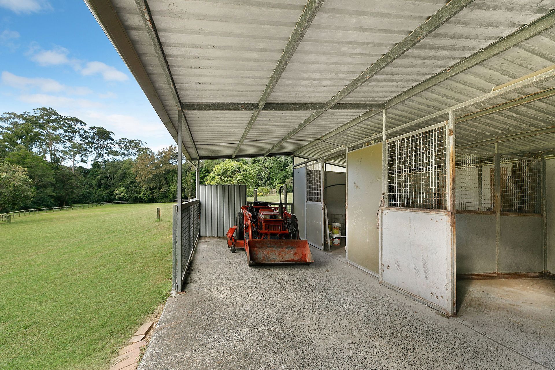 - Horse stables, fenced corral, cleared paddocks, dam