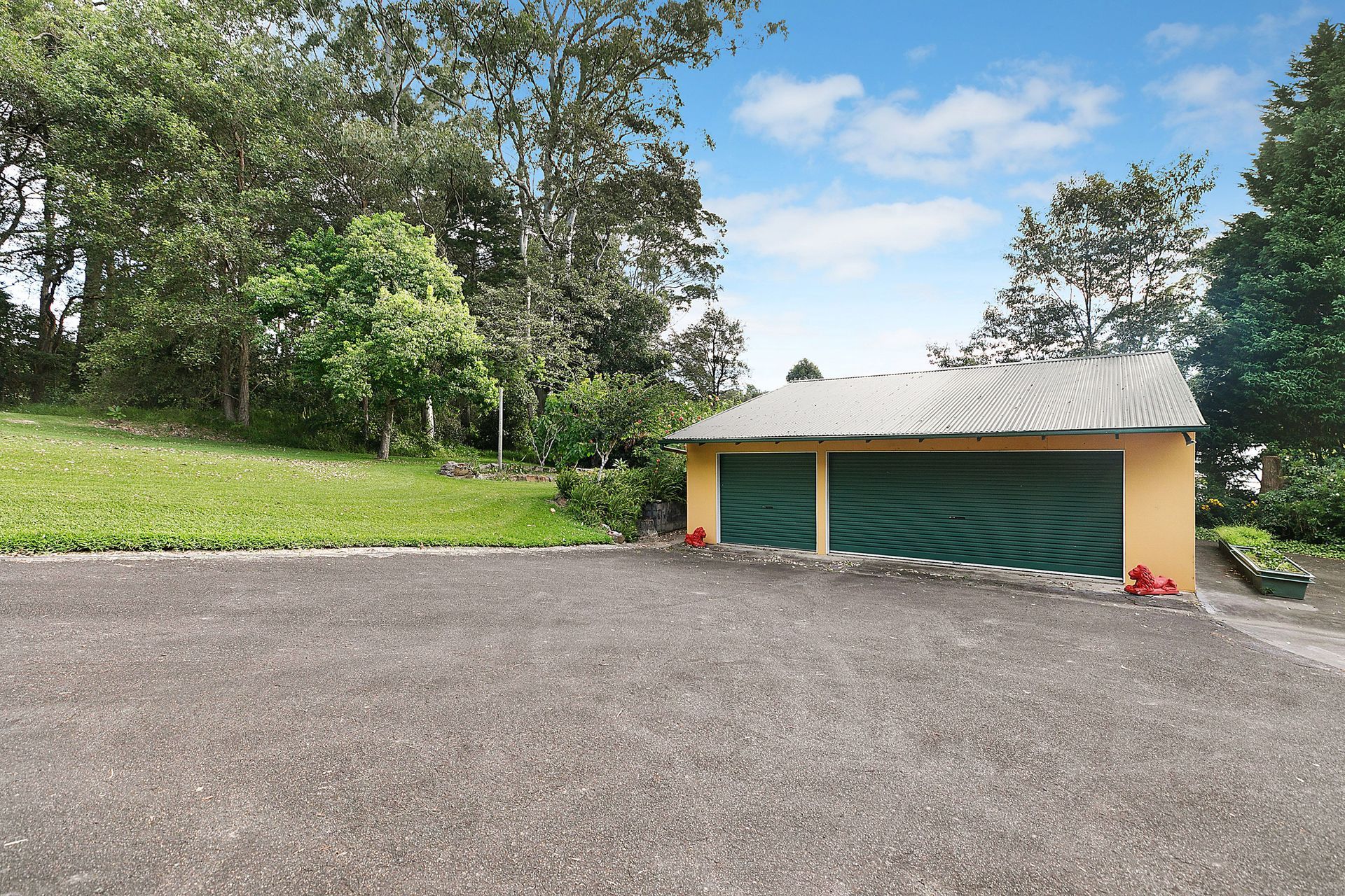 - Triple garage plus double carport, shed and storage; concrete driveway