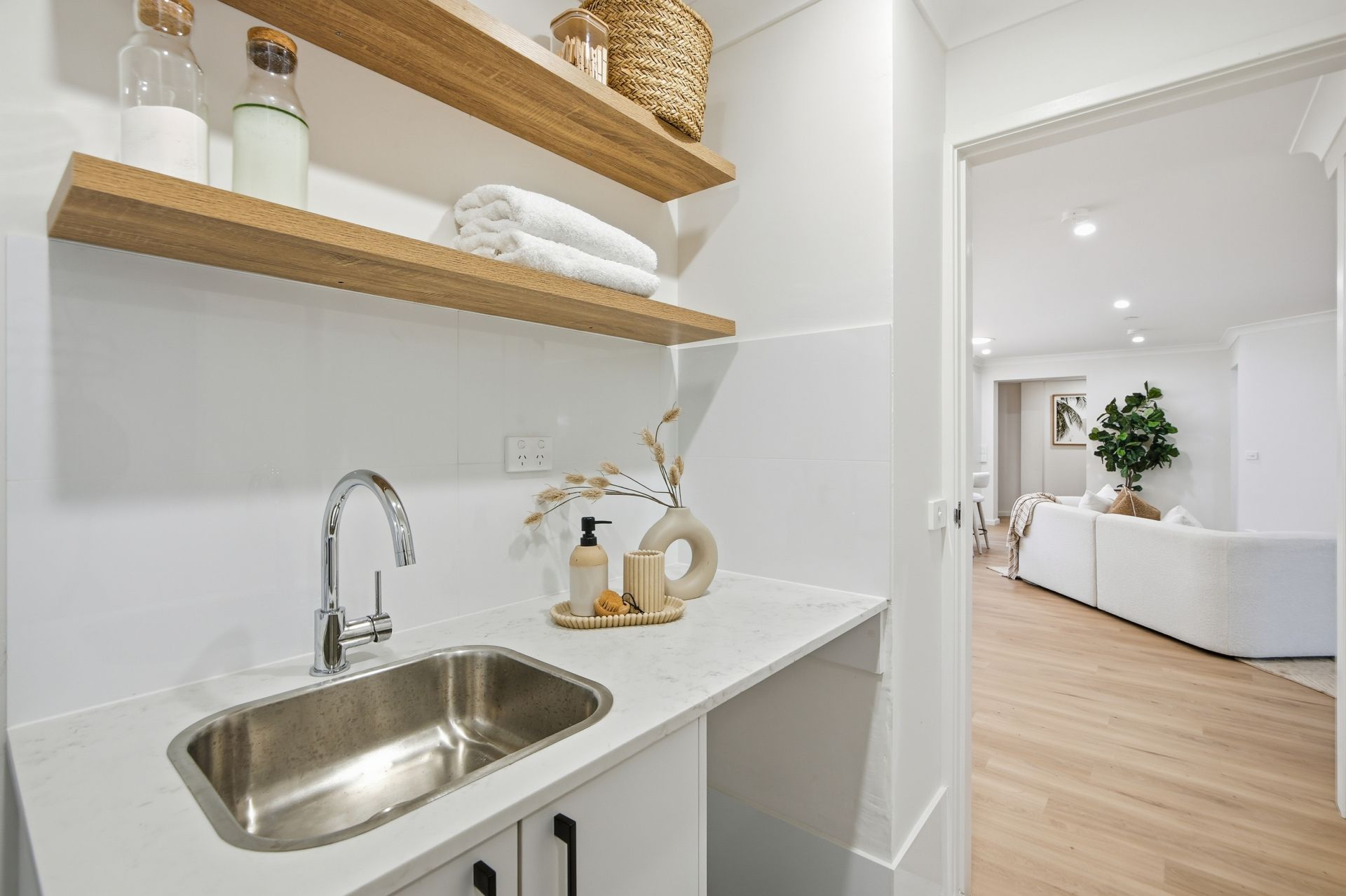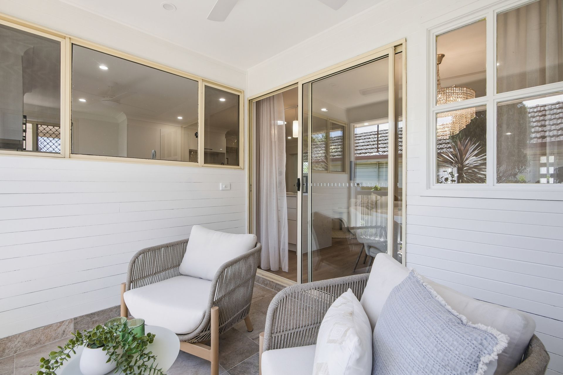 - Easy flow to a sheltered patio, balcony and neat established gardens