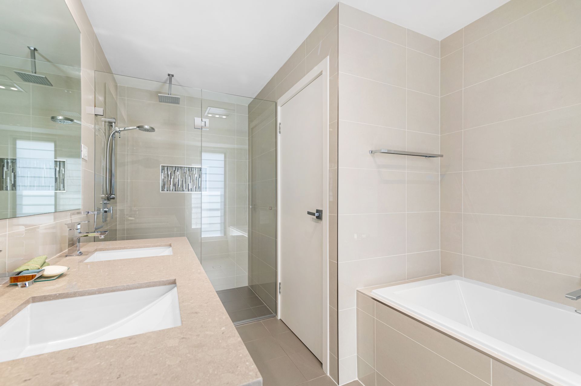 - Modern family bathroom with floor to ceiling tiles and luxurious spa bath