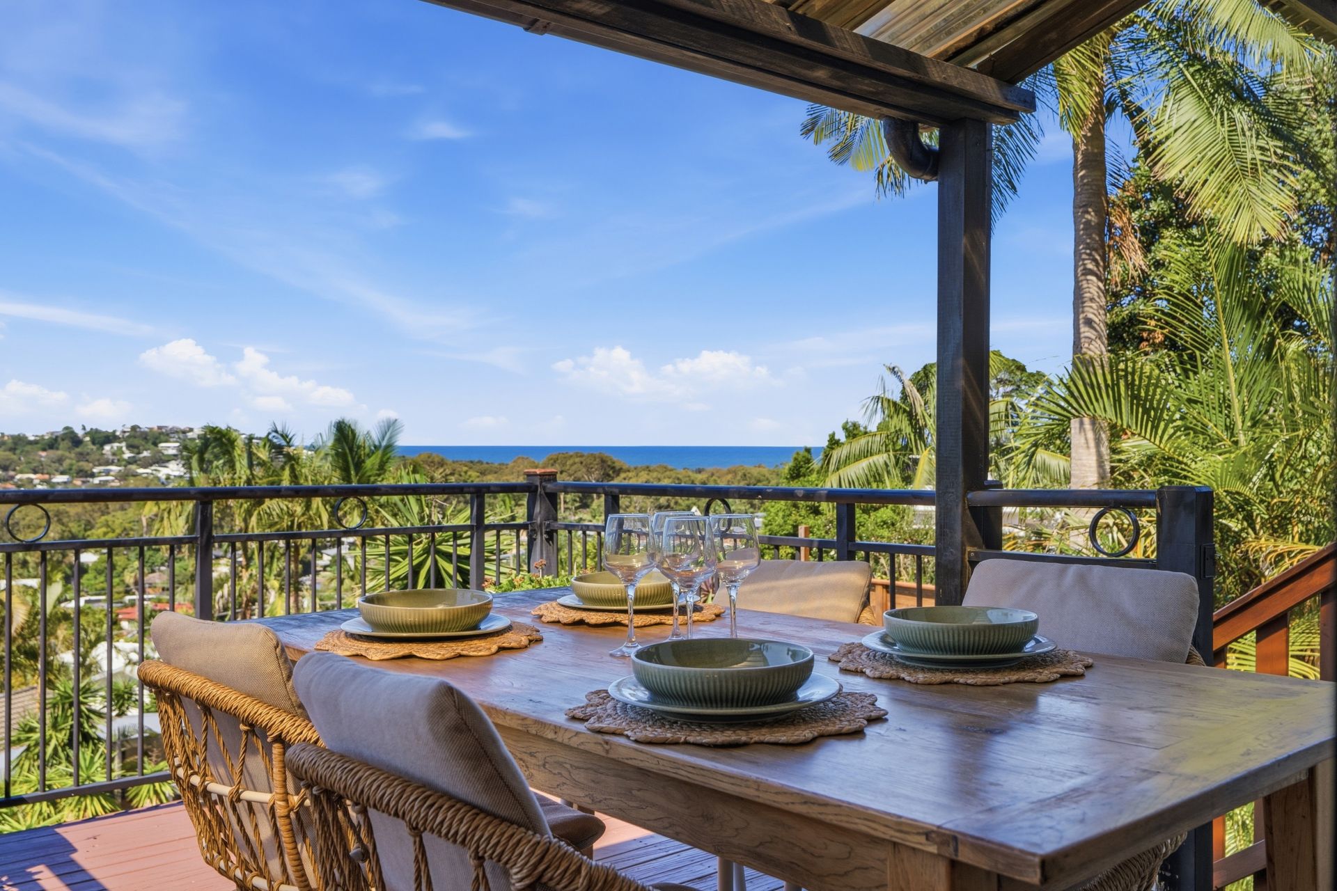 Elevated above the surrounding landscape, this residence captures a sweeping outlook that stretches across lush greenery to the coastline, where the ocean becomes part of everyday living. Designed to embrace its position, the home opens effortlessly to expansive decking and outdoor zones, creating a natural connection between indoor living and the view beyond.