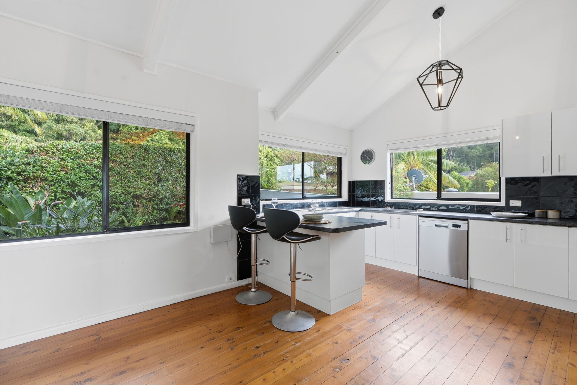 The main living level is light-filled and open, with a seamless flow from lounge to deck, where undercover entertaining takes centre stage. The kitchen sits at the heart of the home, offering generous space, stainless appliances and a direct connection to both dining and outdoor areas. Whether it's quiet mornings overlooking the water or long afternoons by the pool, this is a home built around lifestyle, outlook and ease.